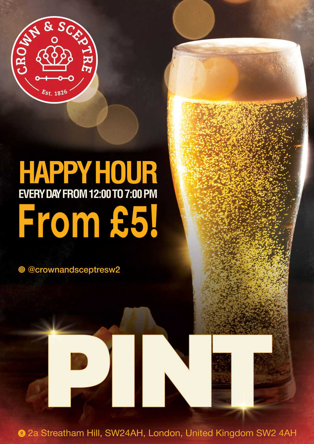Join us at Crown & Sceptre for an unbeatable Happy Hour where you can enjoy your favorite beers for just £4! 🍻 Whether you’re unwinding after a long day, catching up with friends, or gearing up for an exciting night, our Happy Hour is the perfect time to enjoy great drinks at even better prices.